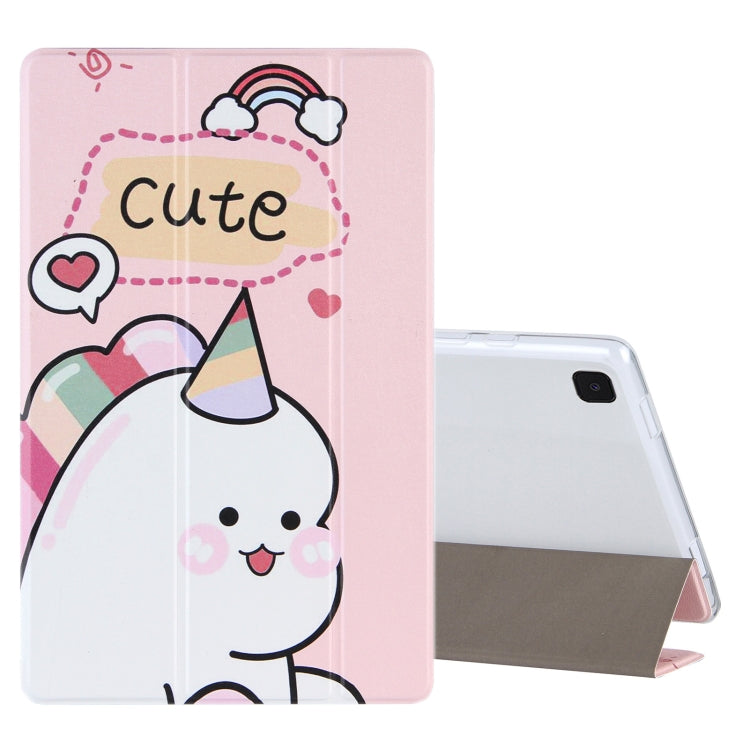 Étui en cuir à rabat horizontal avec motif de dessin coloré et support pliable en trois parties pour Samsung Galaxy Tab A7 10.4 (2020) (Dinosaure rose)